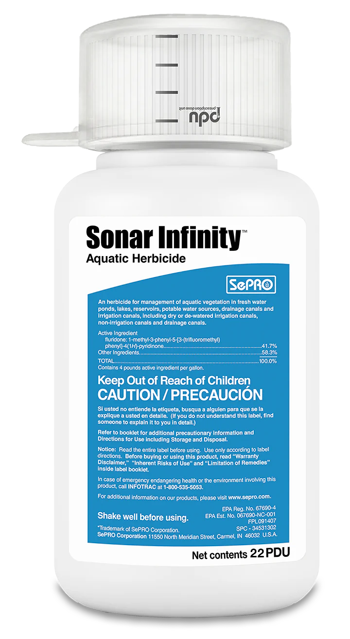 Sonar® Infinity delivers long-lasting, professional-grade aquatic weed control in an easy-to-apply granular formula. Powered by fluridone, this systemic herbicide targets invasive species like hydrilla, coontail, naiad, bladderwort, elodea, fanwort, eelgrass, duckweed, and milfoil. Designed for DIY pond owners, Sonar Infinity is ideal for treating small to mid-sized ponds and lakes without spraying or boats. Simply mix and pour from shore. EPA-approved and non-toxic to fish, pets, and livestock, it provides season-long control by halting weed growth at the root—restoring water clarity and balance.